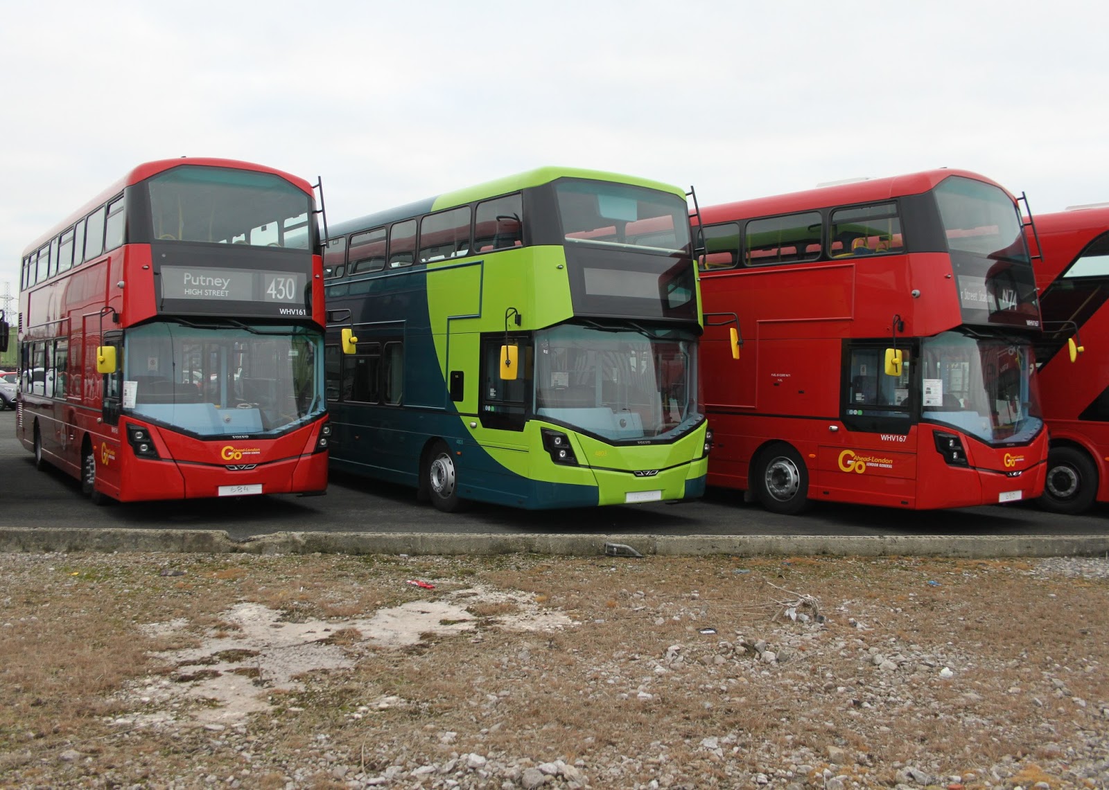 4803 : Vo B5LH / Wt Gemini 3 : Arriva Merseyside surrounded by WHV161 and WHV167 : Vo B5LH / Wt Gemini 3 : Go Ahead London.